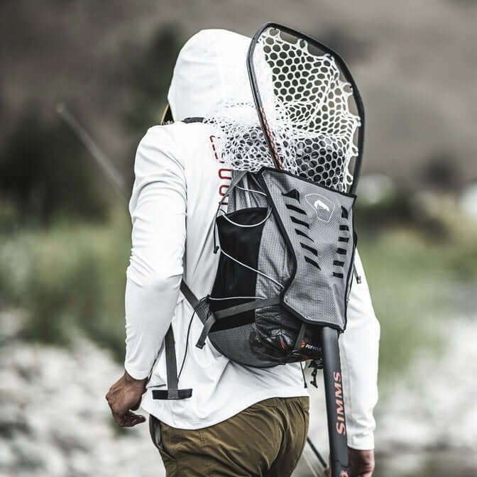 Simms – Flyweight Backpack Smoke – Ultralight, durable storage for long days on the water.
